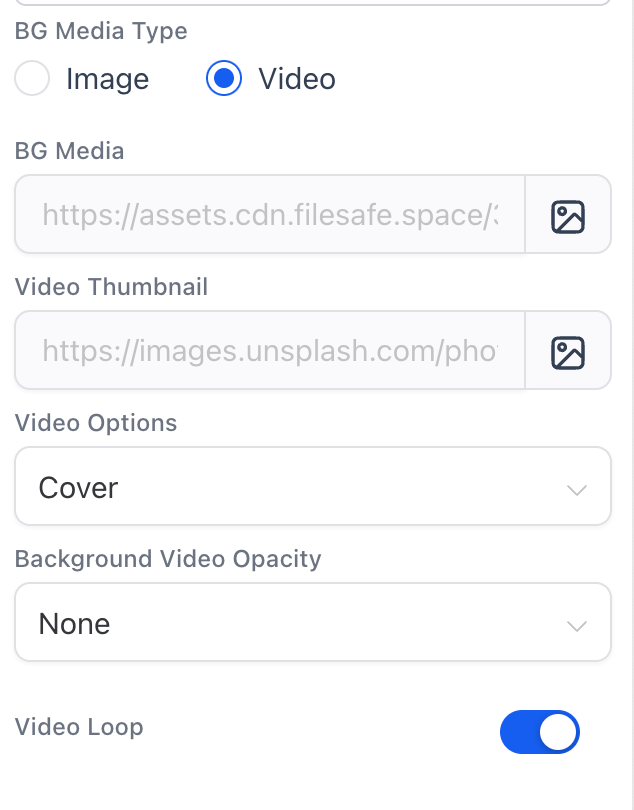 Please note that background videos are supported in HTML5 standard video formats (MP4 and WebM) and are available exclusively in the new builder.